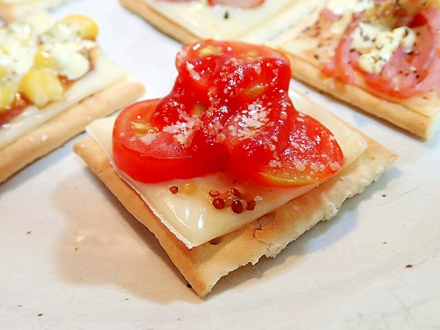 マスタードケチャで チーズとプチトマトのクラッカー レシピ 作り方 By ぷ みぃまま 楽天レシピ