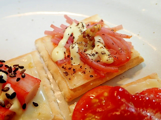 ハムとチーズとトマトソースのクラッカー レシピ 作り方 By ぷ みぃまま 楽天レシピ